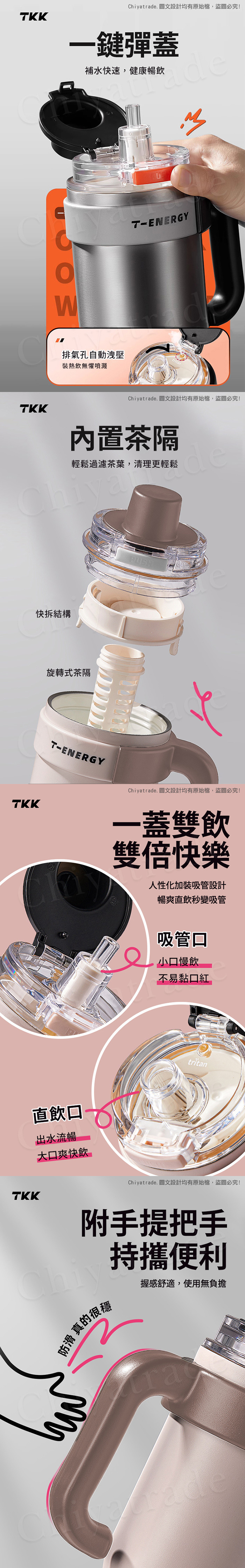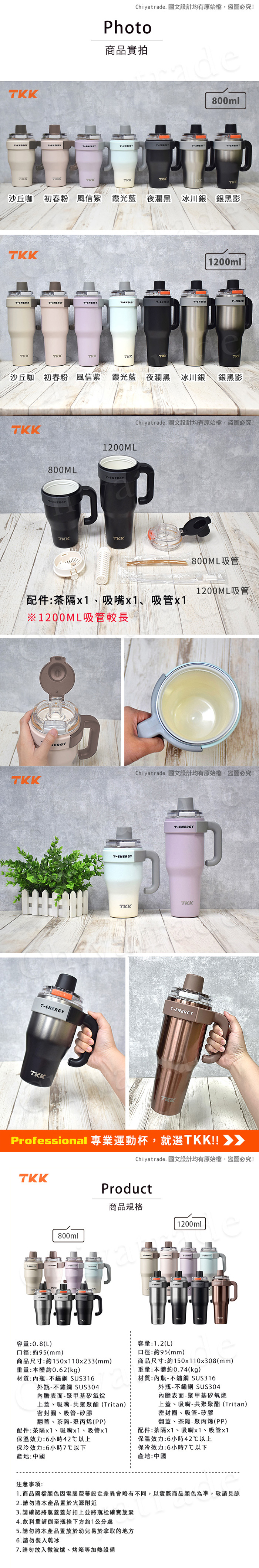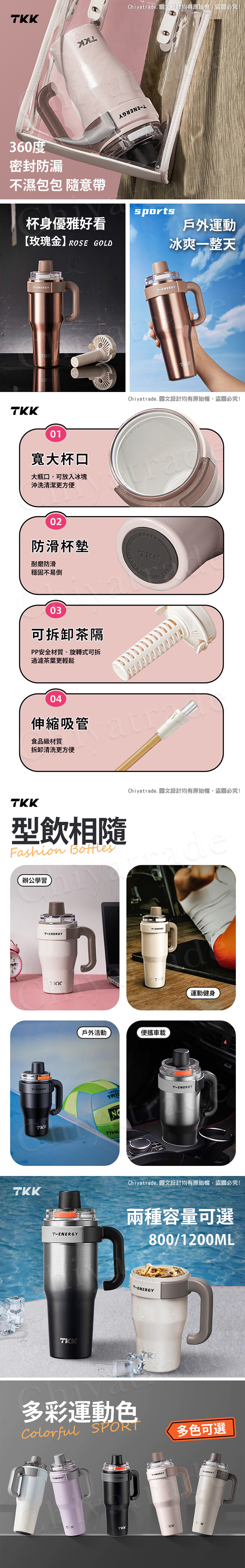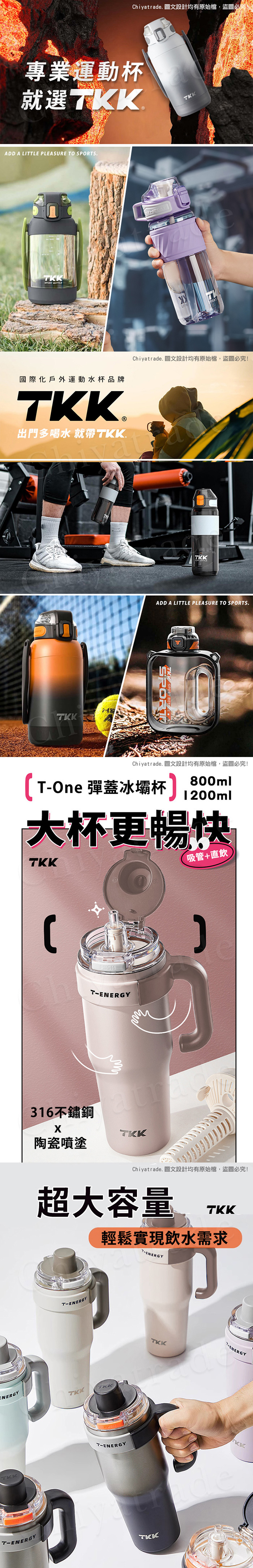【TKK】T-One 彈蓋冰壩杯 316不鏽鋼x陶瓷噴塗 直飲+吸管 保冰保溫 運動隨身杯 800ML(握把式)