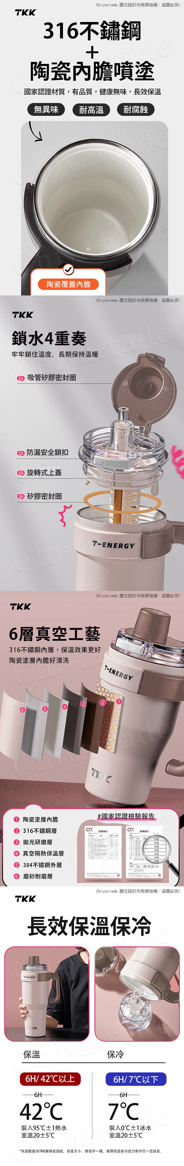 雙層真空隔熱設計,可讓飲料長效保溫保冷,長期鎖住溫度。