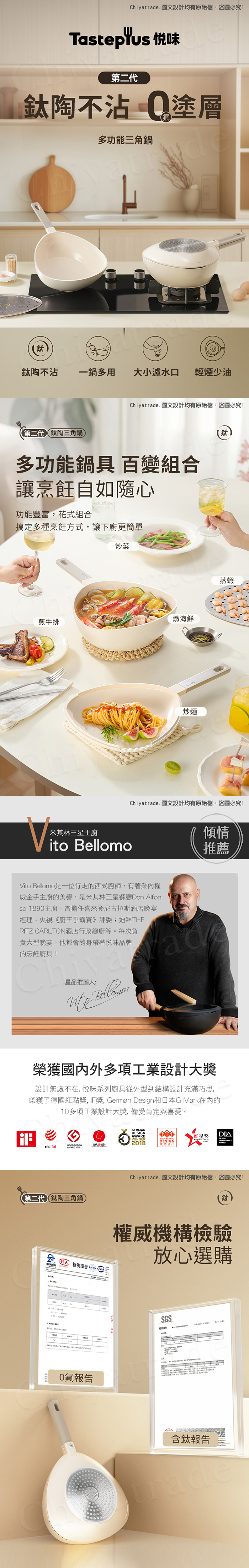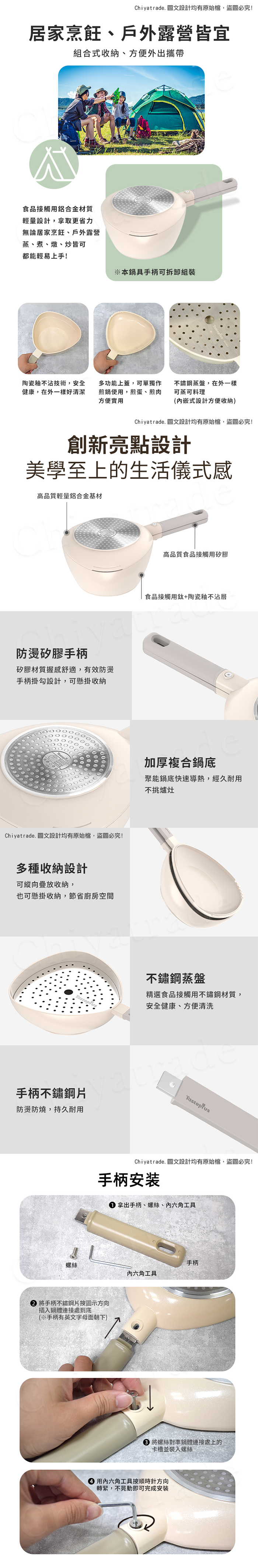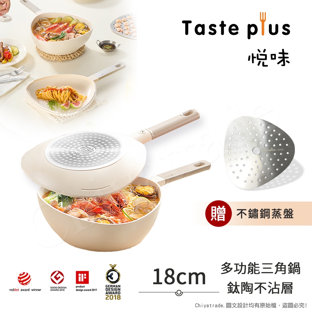 【Taste Plus】悅味元素 小資露營 居家 三角鍋 鈦+陶瓷不沾鍋 上下雙鍋組 18cm(贈蒸盤)-珍珠白