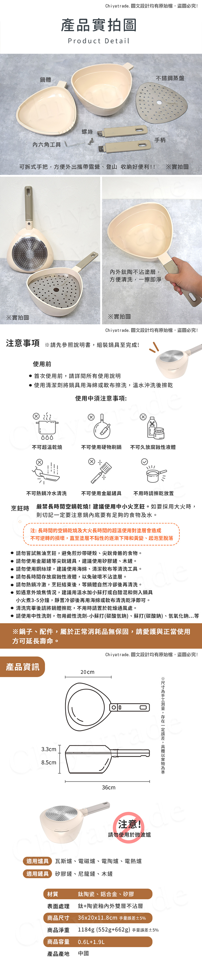 ※請勿大火使用,除了底部加熱區其他部位請勿火燒,避免損毀