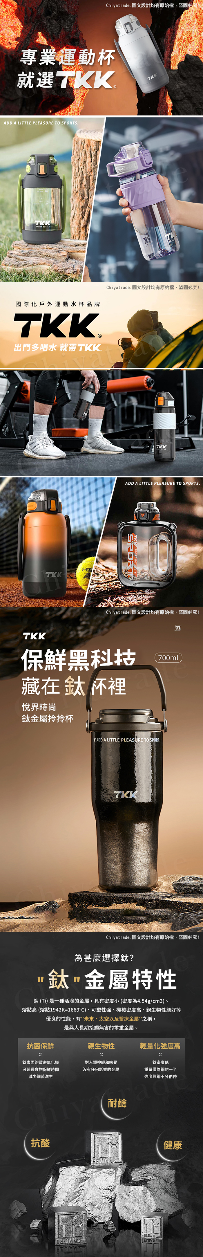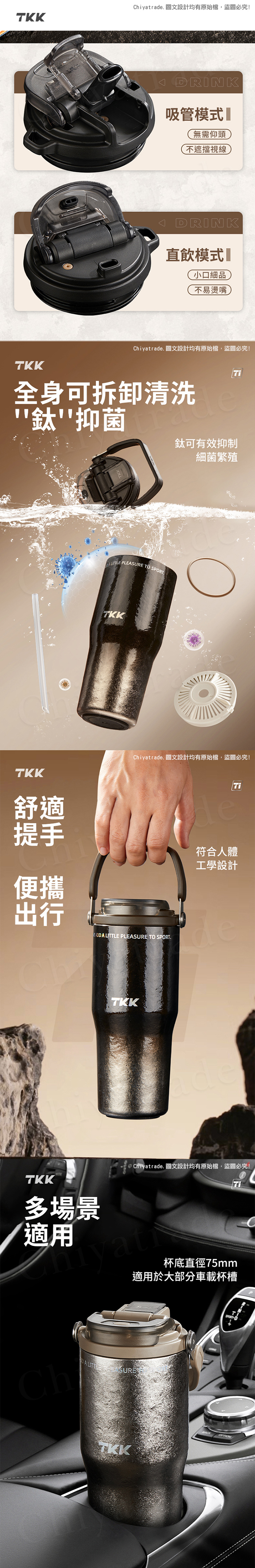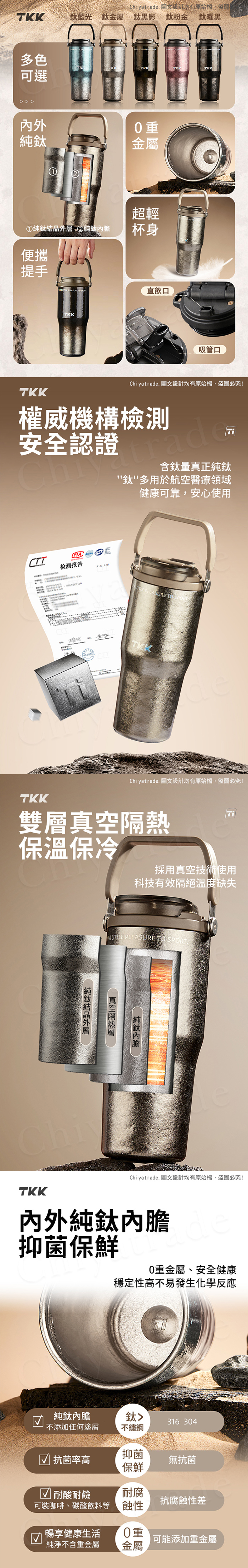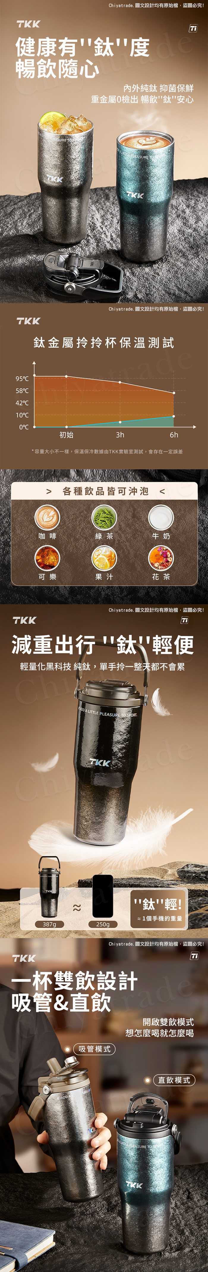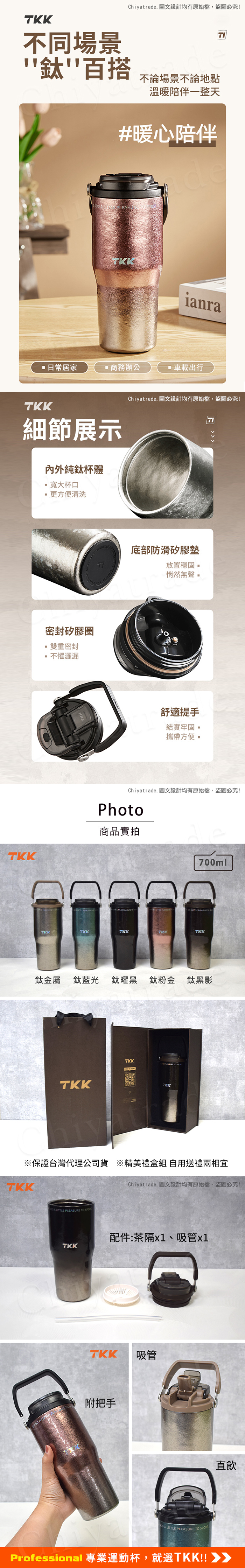 【TKK】悅界時尚 純鈦Ti 拎拎杯 手提式 冰霸杯 抗菌保溫杯 環保杯 700ML(直飲+吸管)-禮盒組